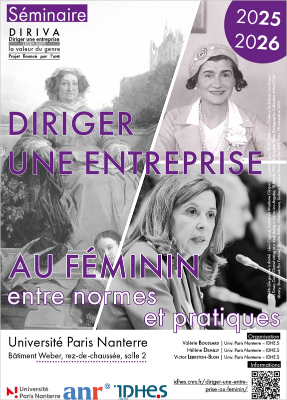 Séminaire organisé dans le cadre du projet DIRIVA – « Diriger une entreprise (XVIIe-XXIe) : la valeur du genre », financé par l’ANR.